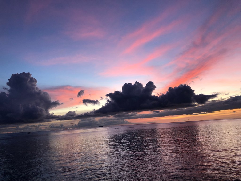 I keep myself busy, in a relaxed island-life kind of way. I have been painting and drawing more! It’s felt great to be back into the habit of creating art. And there’s much to inspire it here! Every day I marvel at the sunsets, the clouds, the brightness of the moon and stars. Mostly, I’m hypnotized by all the new colors, and how much the colors can change! I’ve begun taking time lapse videos of sunsets whenever I can just to try to capture how much change there can be. I’m also reading whatever books I can lay my hands on. (There’s a small street library box by the beach I’ve been borrowing from.)