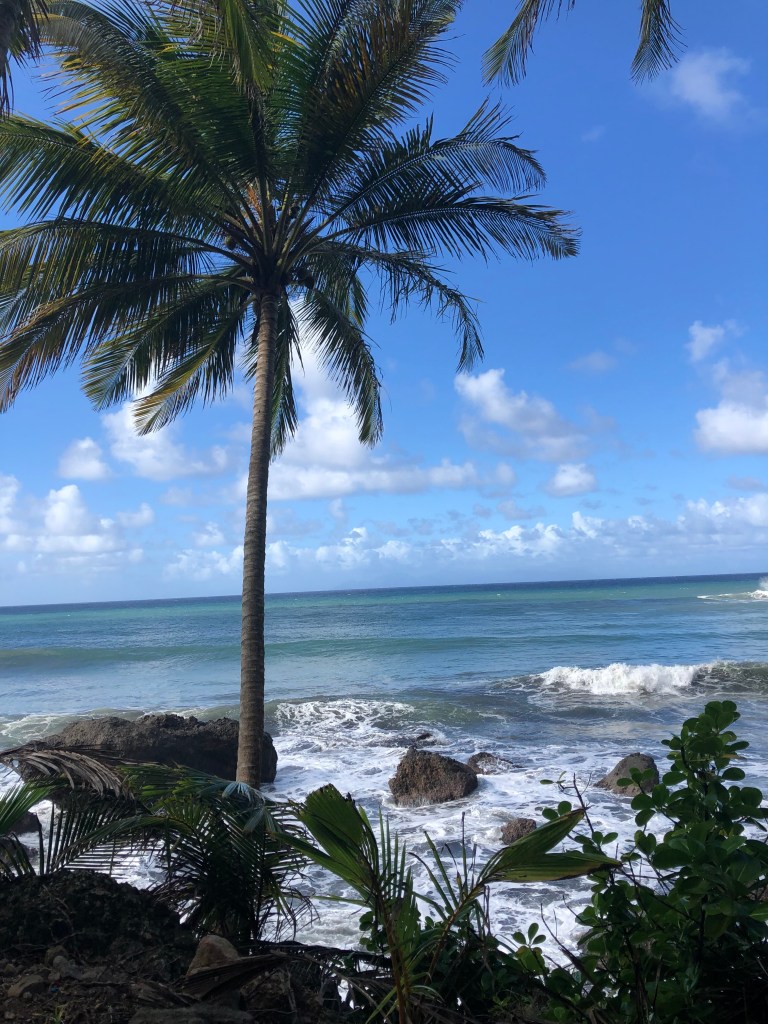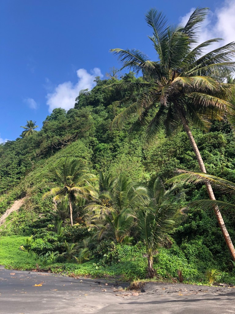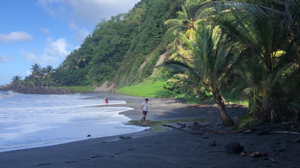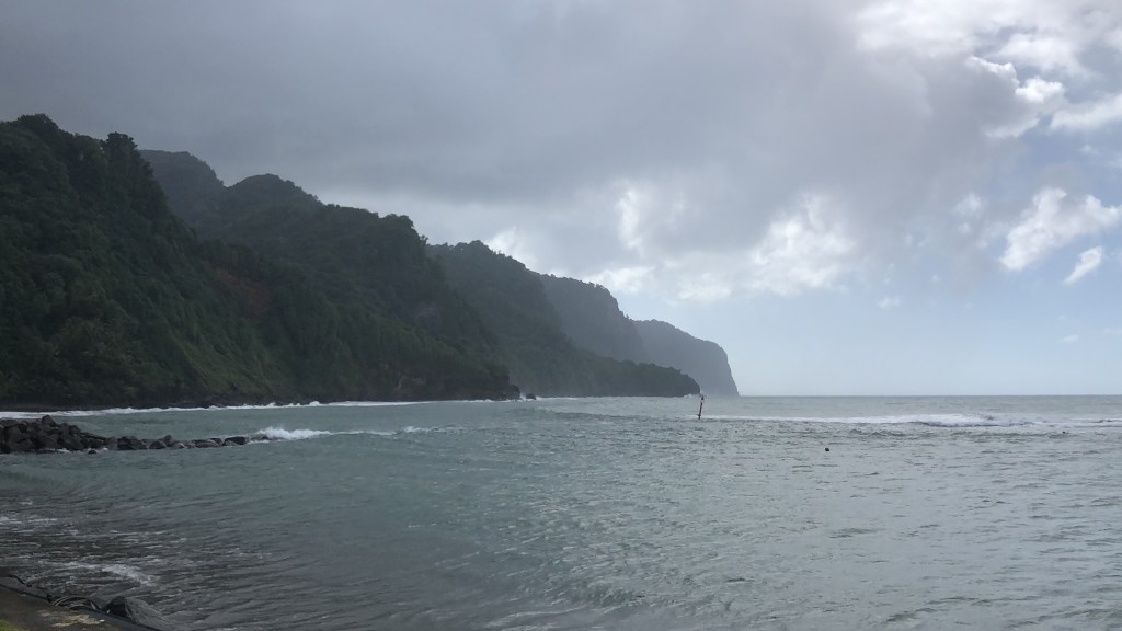 A couple of days ago, I visited Grand Rivière, the town at the very northern tip of Martinique. It’s a cute small town surrounded by dramatic sheer cliffs on all sides. The ocean is much more wild, with huge waves and strong winds. (We looked but did not swim). It’s quite beautiful, but I am glad that my local beaches are on the calmer Caribbean side.