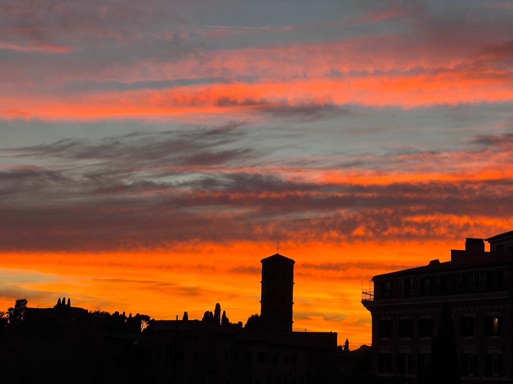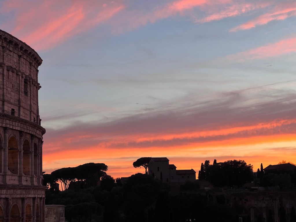 Despite this, there were of course moments total beauty. For every upsetting realization, there was a good surprise. My first night, although worn out from travel, I decided to walk to the Colosseum. (I had promised myself to do something every day). After weeks of happy wanderings, I was overwhelmed by being back in a Car City. But I spotted a staircase up to a little park looking out at the Forum and Colosseum and watched an absolutely stunning sunset.