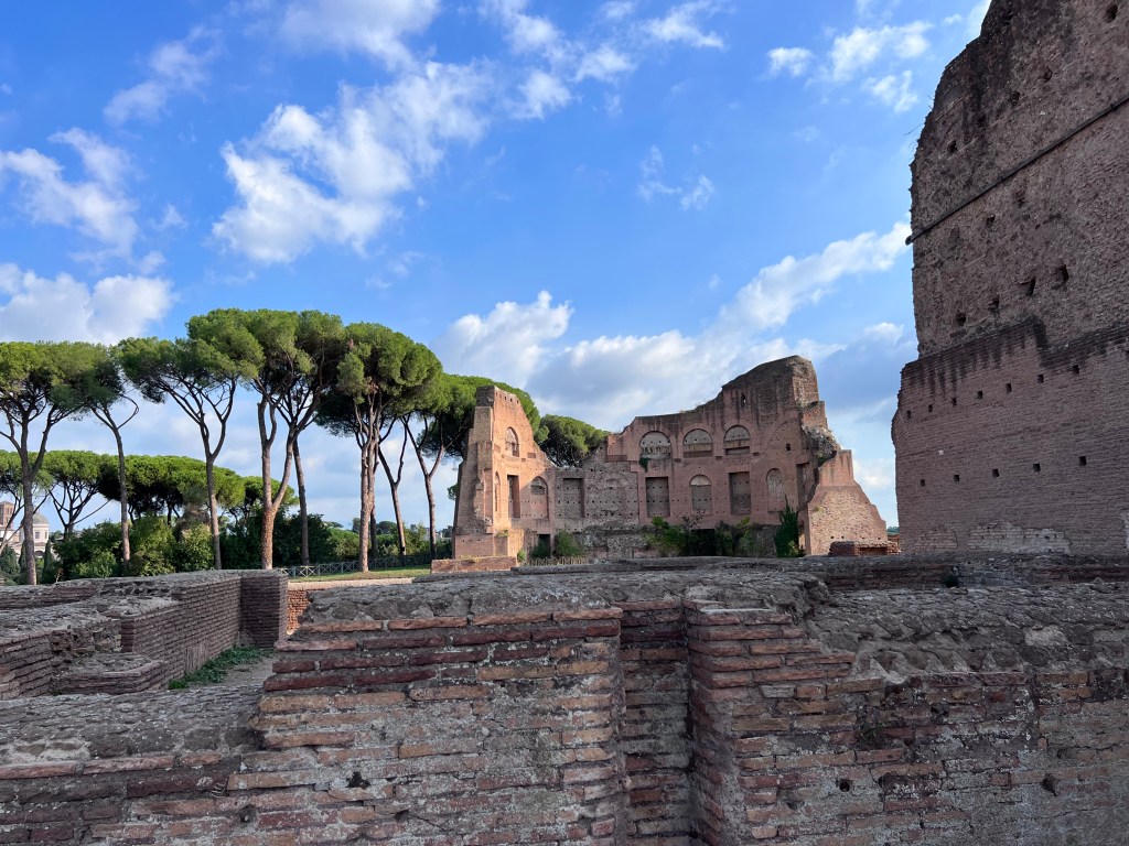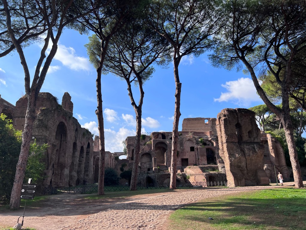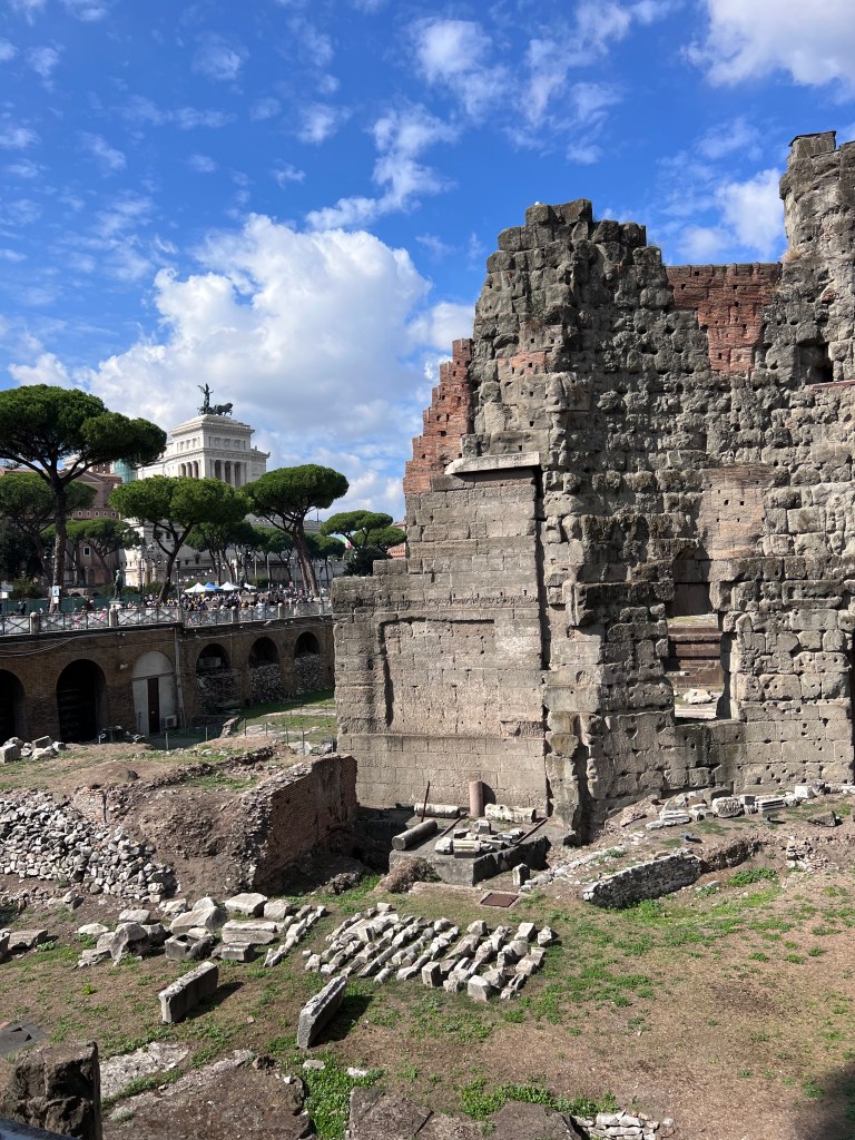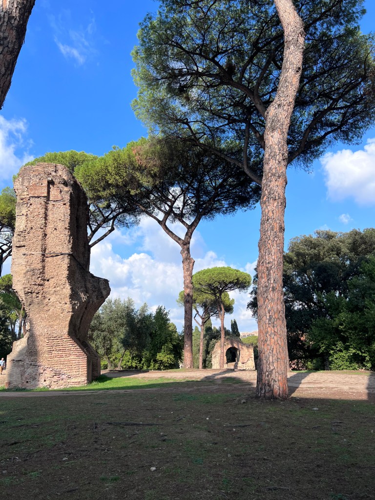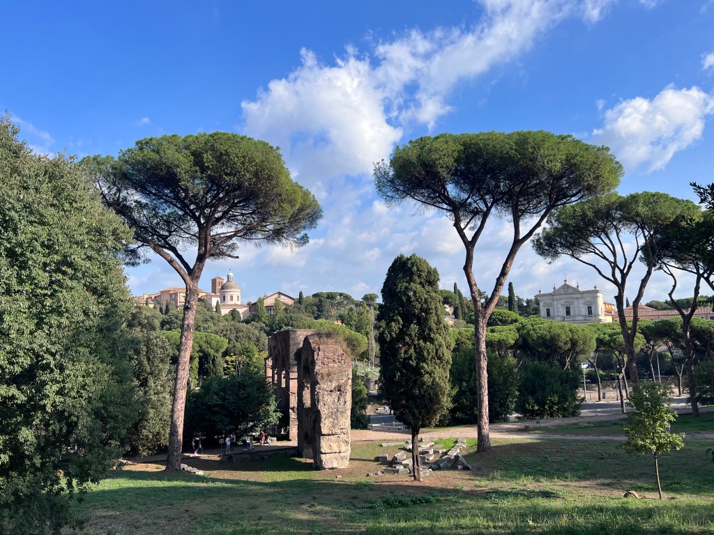 After the Colosseum, I walked on to the old city and Roman Forum. After the packed crowds, it was refreshing and calming to stroll through this park of tall spindly trees and ancient stones. Once I reached the forum itself, the crowds came back although not as packed. But for a while there was a respite. I would love to return one day with an easel and larger supply of paints. I found the ruins beautiful: the perfect arches and impressive masonry were still visible, but time had worn these structures into more organic shapes. The narrow passages of interiors were now remaining on their own, tall walls had turned into sorts of towers, and stairs led seemingly nowhere. The trees and spindly walls mirrored each other. And the sky was wonderfully, intensely blue.