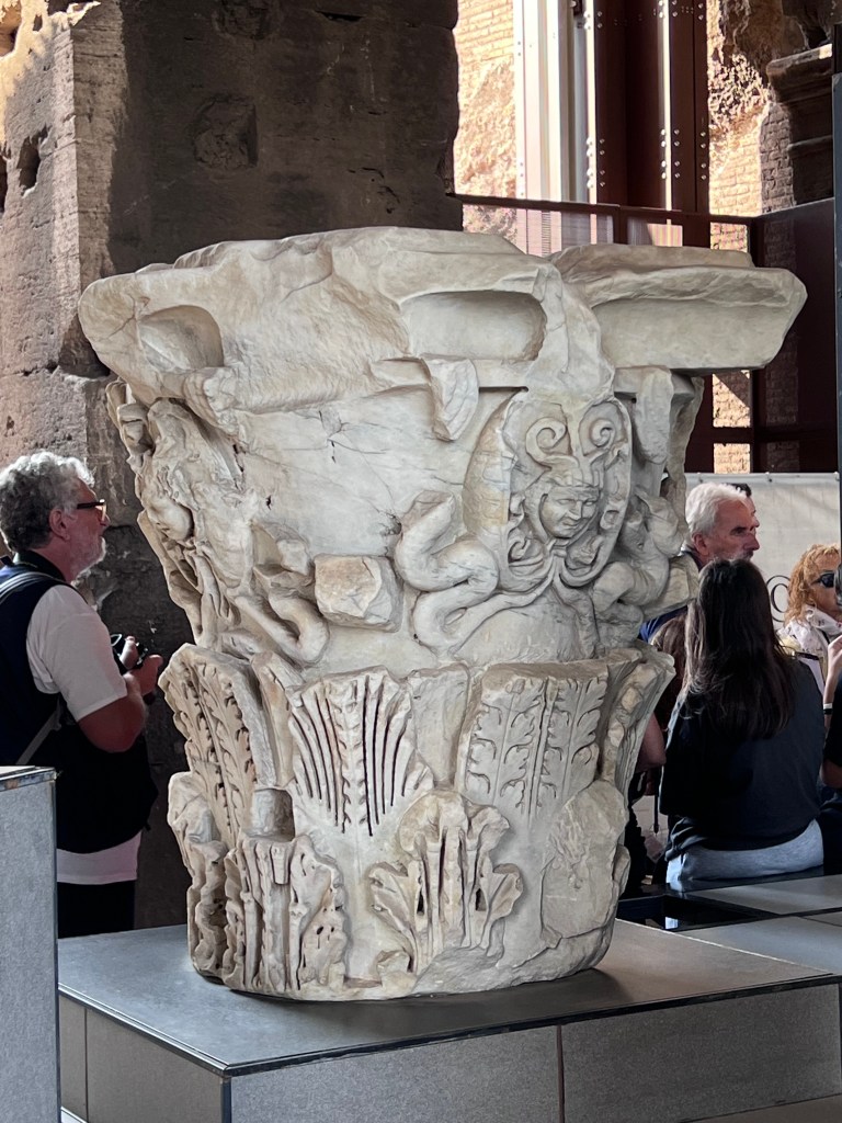 A small sample of the fascinating bits and bobs of daily life left in the Colosseum. Oil lamps, bones from snacks, pottery shards, jewelry, burned or petrified foods, jugs. Not to mention drawn and written etchings.