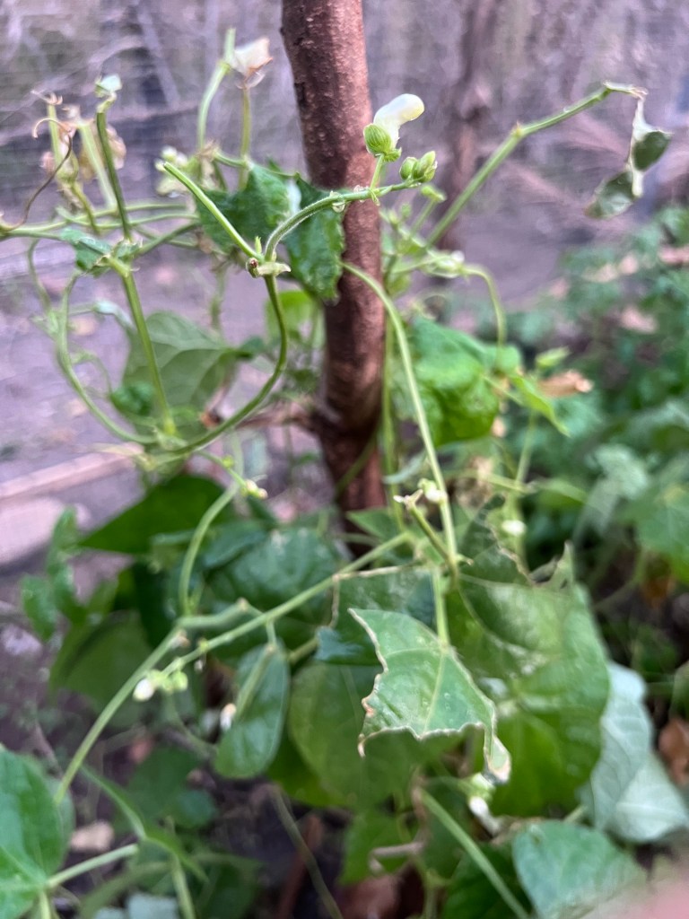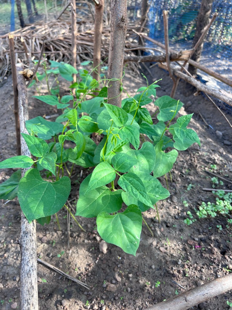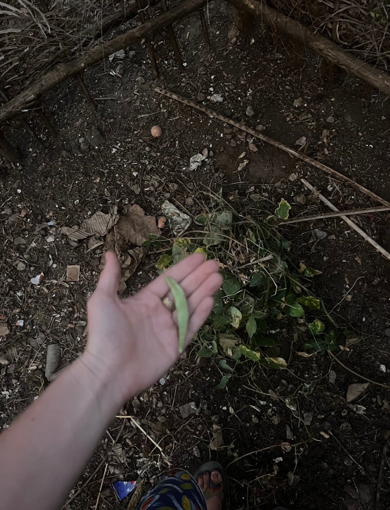 My green beans were thrilling at first: they sprouted so quickly and climbed so fast. I planted too many around the poles because I assumed some wouldn’t take. Soon I was overwhelmed with vines. I left town in mid-December for a Peace Corps training and a short Christmas vacation after. I had noticed a few clouds of small white bugs at night around the beans before I left. But in the rush of preparing for training and wrapping up classes, I did not treat the beans with anything. When I returned to town, I was happily surprised to see how huge my plants were: tomatoes were tall and bushy, my eggplants had enormous leaves, and carrot stems were standing up straight and tall. But my bean leaves were going yellow and hardly climbing their poles. I removed sick looking leaves and was pleased to see a few bean pods. But the tendrils dried up and leaves kept yellowing. The bean pods were the plants last shot at reproduction before she died. Eventually, I faced the music and pulled up what was left of the bean stalks. Ultimately, I’m not sure if it was aphids or some sort of fungal issue. The chicken manure I applied near the tomatoes (next to the beans) might have caused an overabundance of nitrogeon which attracted certain insects. Or there could have been some other residual problem in the soil, or some green bean specific issue. Whatever it was, leaving the beans to slowly die could harm the other plants and was using up valuable real estate.