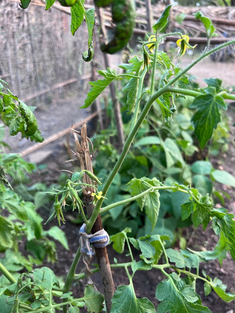 Eggplant and peppers have been taking their sweet time, but the first flowers have begun!