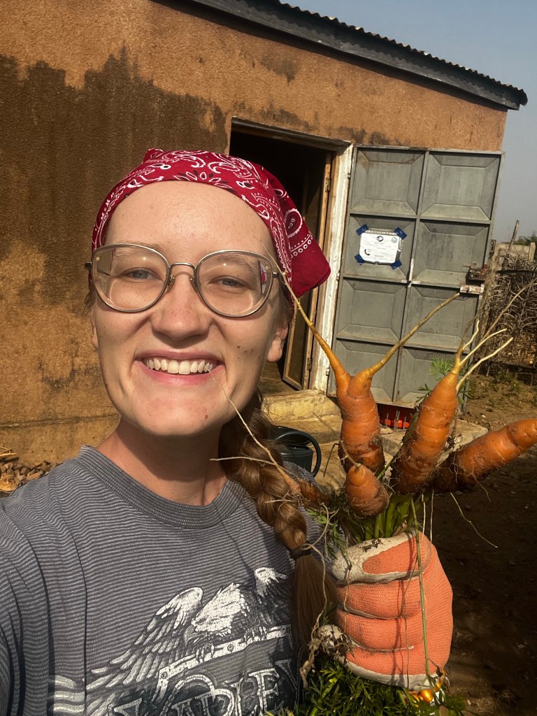 Chatting over the garden fence is now part of daily life. It has allowed me to remind people that my job here includes promoting gardening and helping people start their own. As an added bonus, it has shown people that I am capable of working hard. I’ve shown my commitment to being here by investing my time and energy into the land. And at least two gardens have started in town! My friend, Kapo, and his cousin have each started a garden. I’ve happily passed on a few tomato and eggplant plants to their plots. Soon, hopefully very soon, I will begin a school garden with my students. Yesterday, I ate the first carrots from my patch, and this morning I gifted the chef a few carrots straight out of the dirt. As my plants continue to mature, I’ll continue to gift produce and spread the gardening bug.